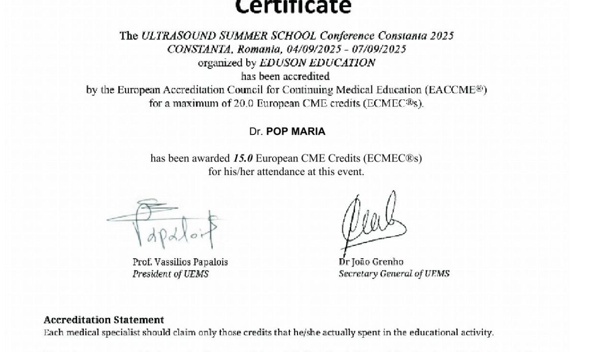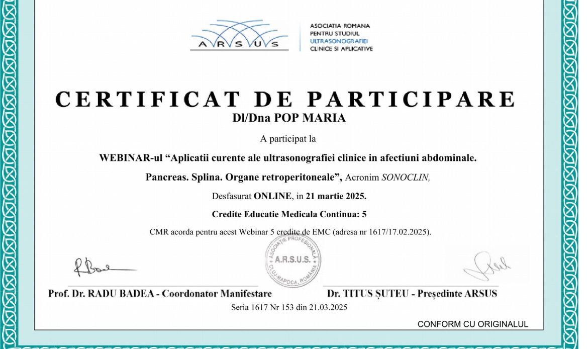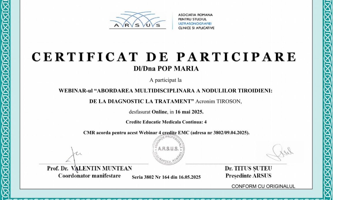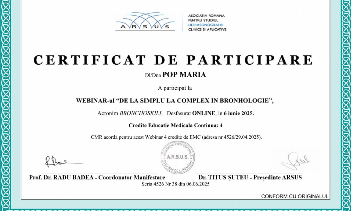 A absolvit UMF VASILE GOLDIS – Facultatea de Medicina Generala promotia 1999.