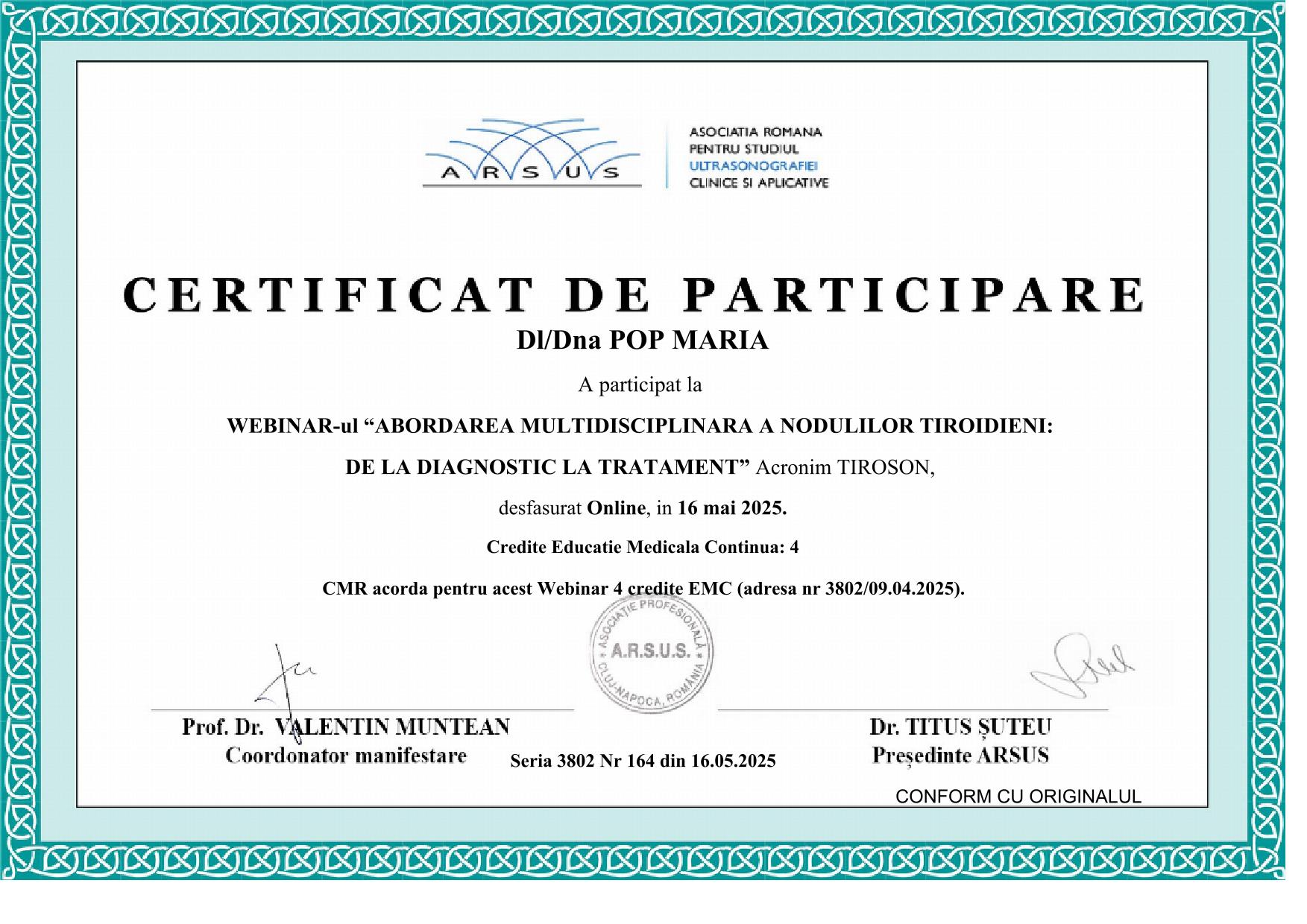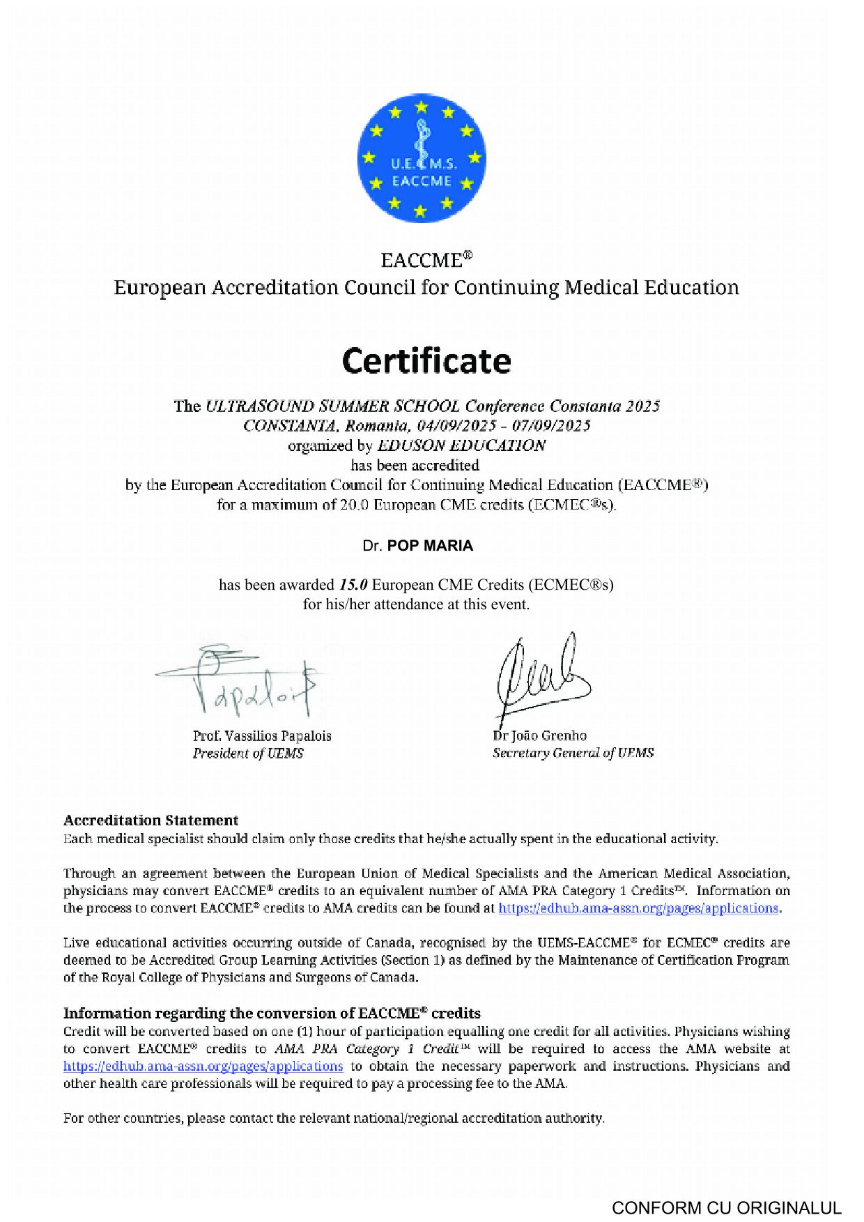 Participant activ la diverse congrese, conferinte, simpozioane si cursuri interne.